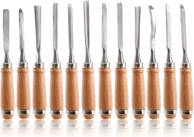 Basic set of multiple chisels made from steel that gives beginners a variety of sizes for carving and shaping wood without spending much.